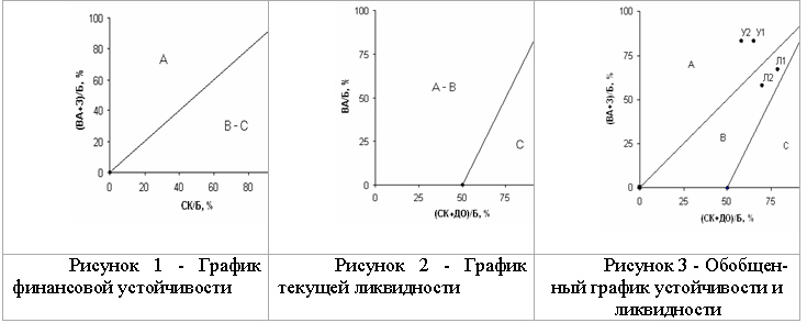 Используя общие координатные оси графиков устойчивости и ликвидности, их можно объединить в одном (рисунок 3).